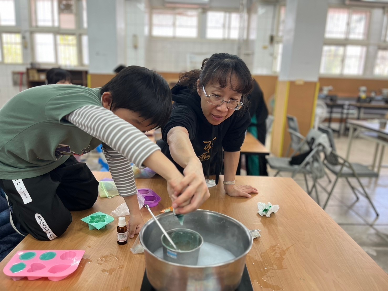 The four-day life camp brought together rich and exciting subject matter for the students. The first learning activity, which covered “Quinoa Food Education”, was arranged by Professor Yun-Yang Chao of the Department of Plant Industry. Teaching the students about the cultivation features and nutritional components of Taiwan’s quinoa, Chao also focused on ways to reduce greenhouse gases and increase yields during the cultivation process. The students also had the opportunity to make delicious and healthy red quinoa sushi by hand. The next activity, which introduced students to the ways in which the DNA double-helix transmits the genetic code of life, was led by Associate Professor Chia-Hung Yen, who used a DNA model painting activity to help the students get a feel for the structure of DNA and the progress that biotechnology has been making in recent years. Next on the agenda was a “multi-ethnic cake and cookie culture” activity organized by Assistant Professor Chia-Chun Ku of the NPUST General Research Service Center. Through the activity, students were introduced to the history of “rice eating “, and they learned about the festival cultures of various ethnic groups and developed an appreciation for the artistic beauty of different traditional cakes through DIY activities. The final course, which was led by Professor Wen-Ling Shih from the Department of Biotechnology, taught the children about aromatic essential oils and gave them the opportunity to make artistic and creative handmade soaps. The activity brought the camp to a memorable close, and allowed the students to return home with a sense of accomplishment and a little something to show off to their families.