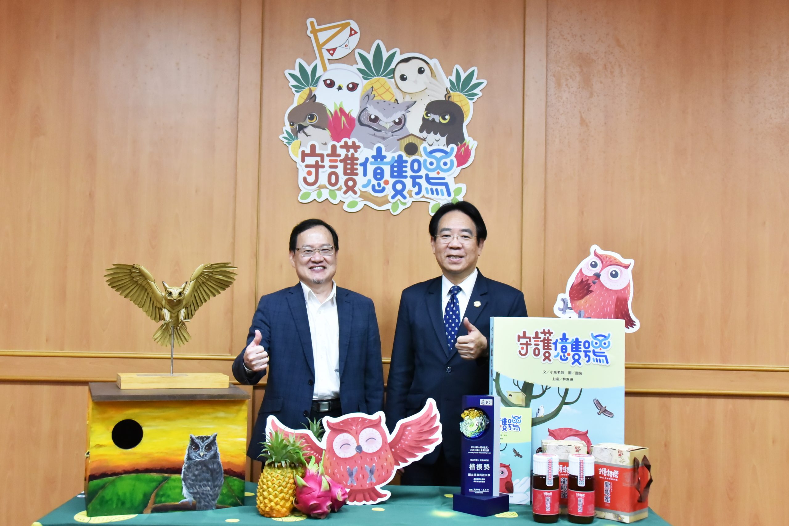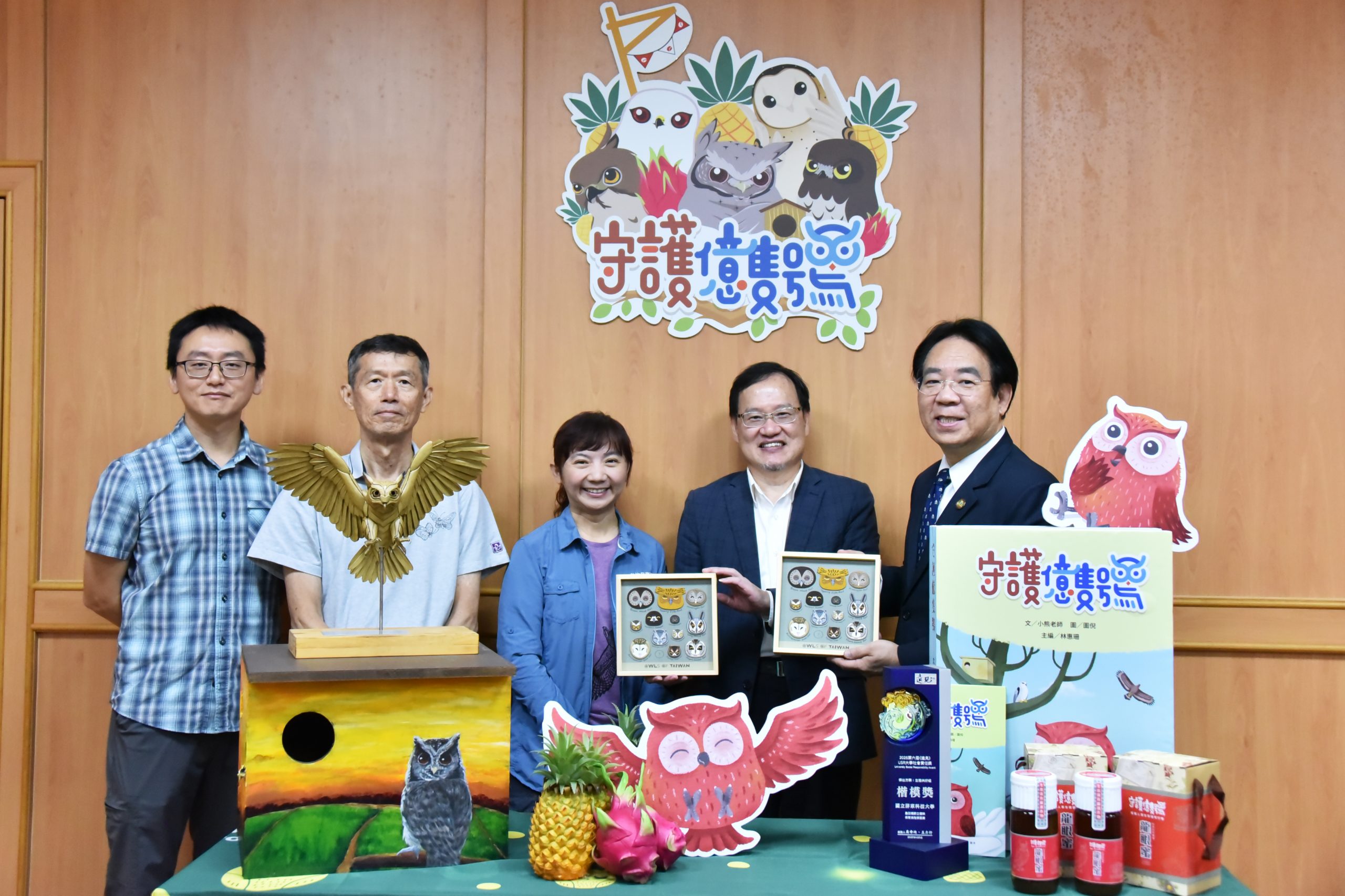 In response to the challenges of rapid global biodiversity degradation and rural habitat fragmentation, the Institute of Wildlife Conservation at National Pingtung University of Science and Technology (NPUST) has been collaborating with Farglory Life Insurance to promote the “Protecting Every Owl” initiative since 2021. Through scientific research, habitat creation, educational outreach, and friendly agricultural practices, the initiative aims to establish a model of collaboration between academia and industry which promotes ecological sustainability. A presentation of the results was held at 9:30 a.m. on July 11 (2025) at NPUST, co-hosted by NPUST President Chin-Lung Chang and Farglory Life Insurance General Manager Hsue-Hsin Chao. The presentation showcased the remarkable achievements of the initiative and high value of interdisciplinary collaboration between academia and industry when it comes to protecting local ecosystems.