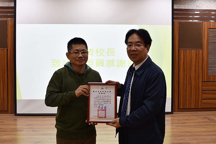 The Office of Student Affairs held its first-ever “Zero Campus Traffic Accidents” Creative Proposal Competition, inviting student teams to develop feasible traffic-safety improvement plans and analyze related policy issues for both on-campus and surrounding roadways. A total of 18 proposals advanced to the final presentation round, which took place today (12/13) at 9:00 AM in the Humanities Lecture Hall on the 2nd floor of the General Building. President Chin-Long Chang, Pingtung County Police Traffic Division Deputy Commander Ta-Wei Cheng, Formosa Horticulture Group CEO Fu-Chuan Peng, Executive Vice President Wen-Ling Shih, Department of Business Administration Associate Professor Chia-Yi Chen, Director of the Military Education Office and Chief of the Student Life Guidance Section Chuan-Chun Fu, and former Military Education Office Director and former Chief of the Student Life Guidance Section Wen-Ching Kuo were present for the event.