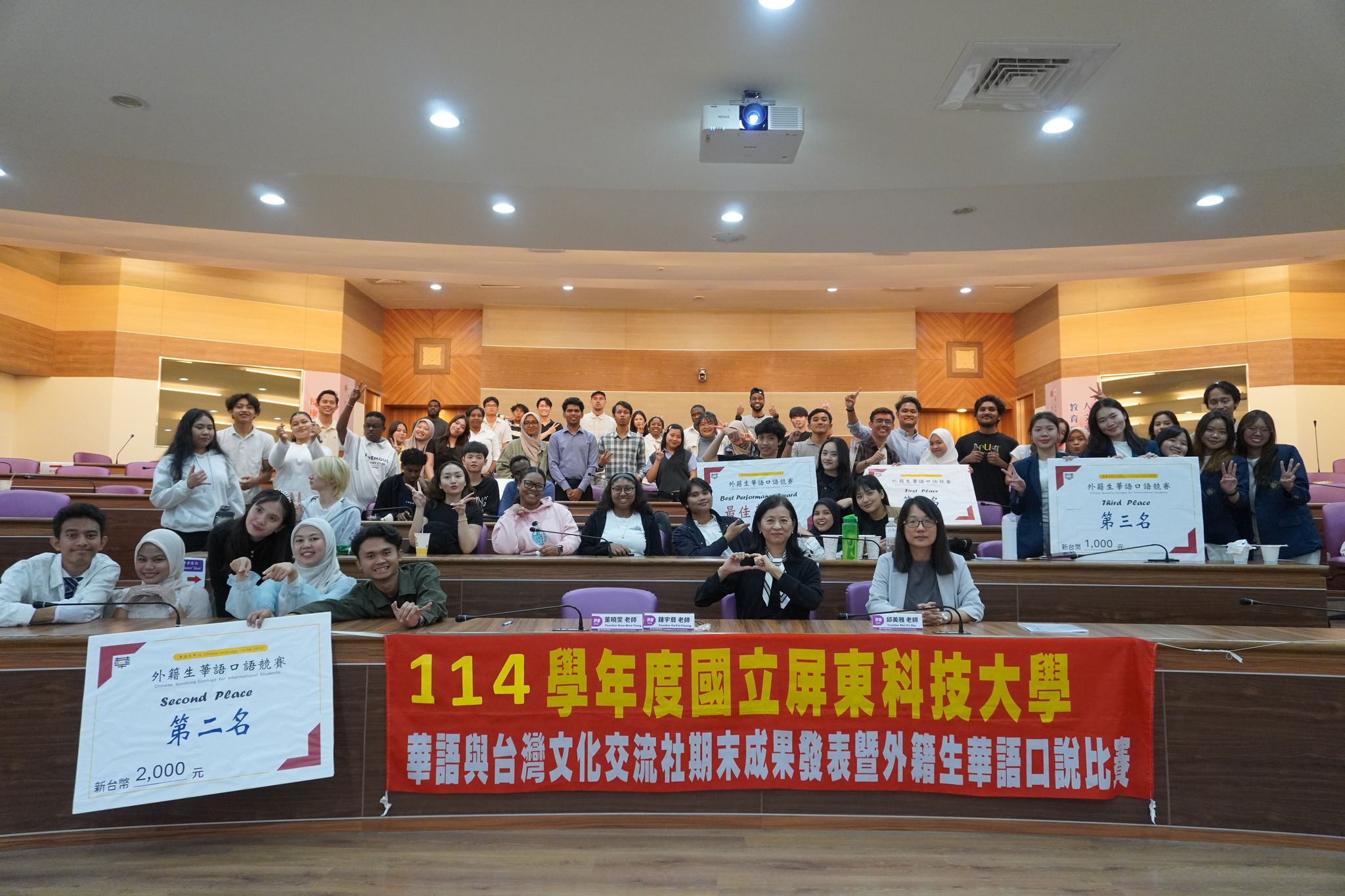 本校推薦之印尼籍學員郭禮斐,於結業典禮上榮獲外交部「部長獎」並上臺接受頒獎,代表本校學員發表得獎感言。郭禮斐學員全程以中文分享其來臺參與專班之學習歷程與文化體驗,展現優異華語能力及對臺灣社會與文化的深刻理解,獲得現場貴賓一致肯定。