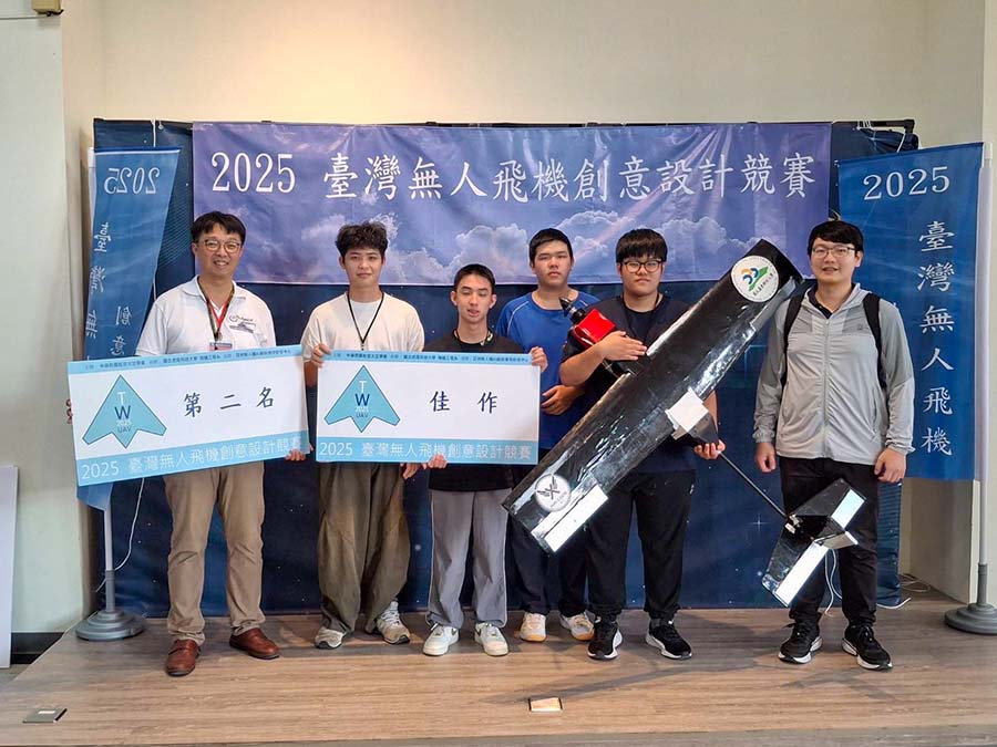 由中華民國航空太空學會主辦的「2025臺灣無人飛機創意設計競賽」日前在嘉義「亞洲無人機 AI 創新應用研發中心」盛大舉行,國立屏東科技大學(下稱屏科大)師生共同設計「空中代號X」定翼型無人機,憑藉創新設計和精湛技術,在全國各大專校院的17組晉級隊伍中脫穎而出,榮獲自造飛行組飛機設計獎第二名及創意獎佳作,展現屏科大在無人機設計與跨域實作上的亮眼成果。