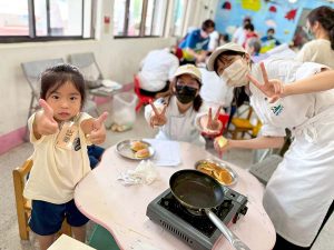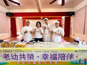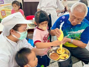 國立屏東科技大學「老幼共榮、幸福陪伴-共創永續安心家園」USR團隊與萬金社區發展協會及赤山國小附設幼兒園,於10月9日在萬巒鄉赤山國小舉辦「綠色餐桌」活動,邀請萬金社區長輩及赤山國小附幼的學童共同參與。現場由餐旅管理系施慧雯老師帶領師生團隊帶領,引導長輩與小朋友親手製作火龍果優格杯、卡士達銅鑼燒及蜂蜜檸檬百香果汁等甜點飲品,運用屏東在地食材創造出低碳美味,營造跨世代共學、共樂的溫馨場景。