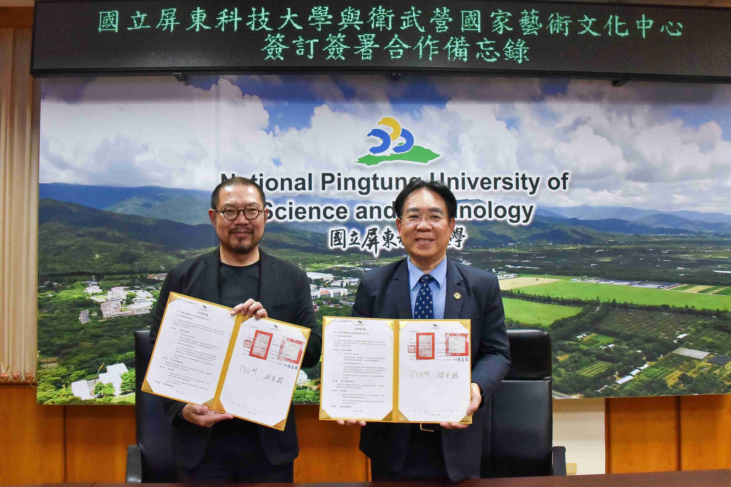 本校為落實藝術扎根教育,今(2)日由校長張金龍代表與衛武營國家藝術文化中心(以下簡稱衛武營)簽署為期三年的合作備忘錄。雙方將展開全方位跨域結盟,結合本校的生態專才與衛武營的藝術能量,聚焦校園生態教育、永續人才培育及藝術體驗推廣,透過資源共享,攜手打造永續共融的藝文生態系,為文化產業注入綠色創新動能。